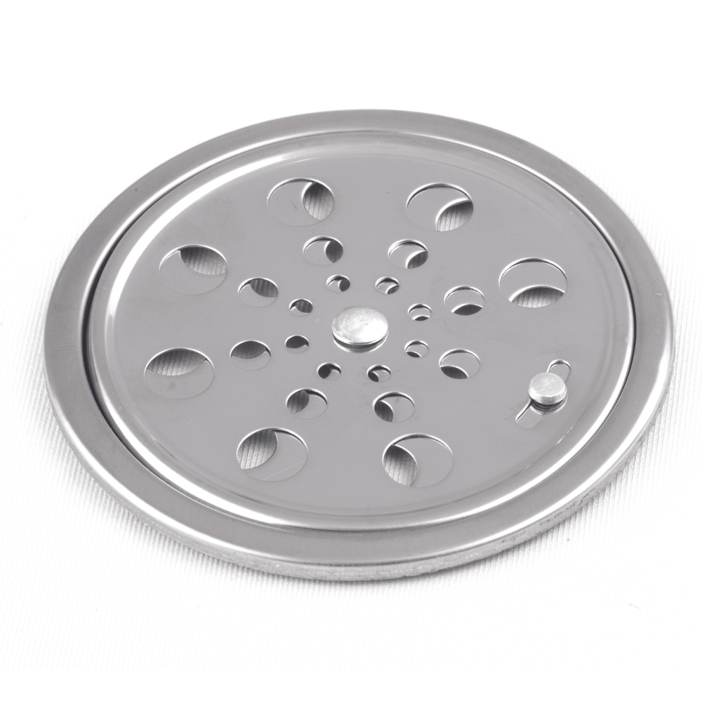 GRELHA INOX REDONDA (100MM) COM CAIXILHORef.: 110.547- Grelha (Ralo). - Com Caixilho (Porta grelha). - Sistema abre e fecha. - Inox polido.